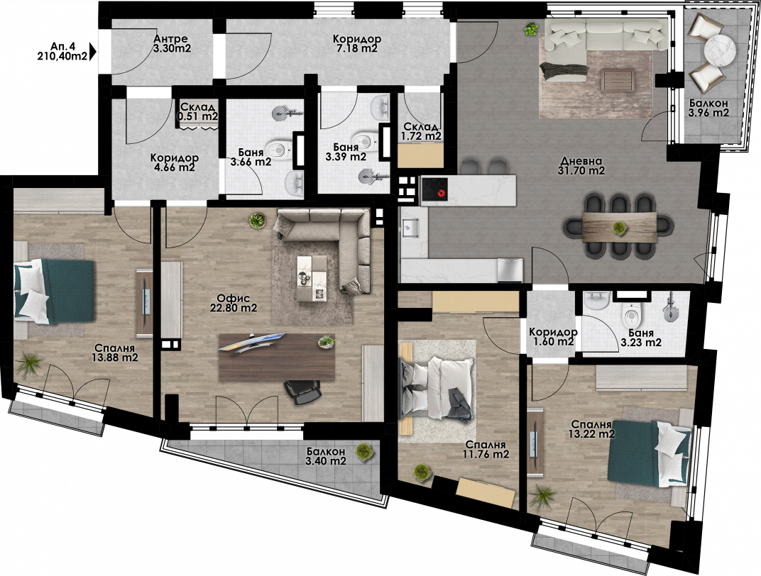 Ап. с 3 спални